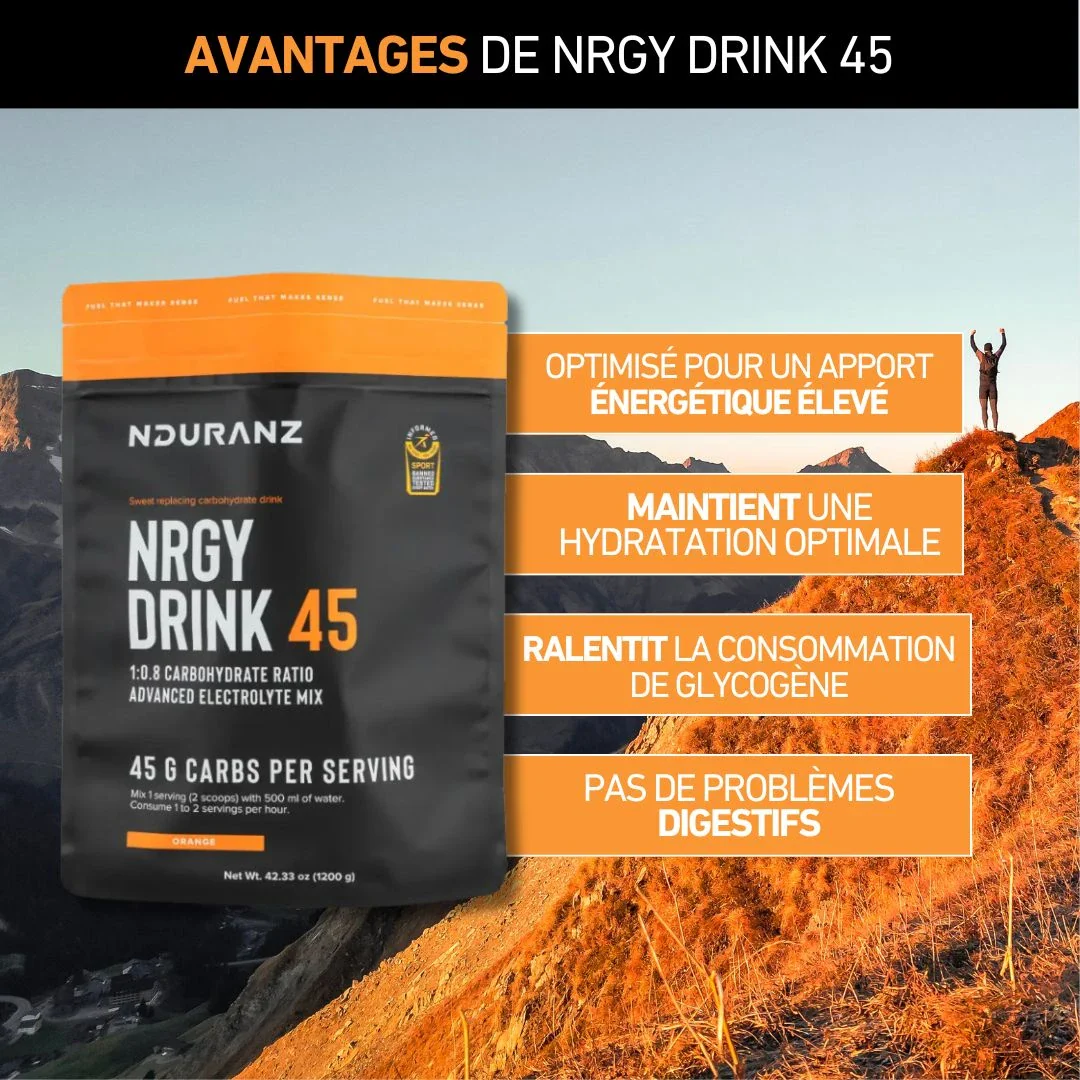 La boisson Nrgy Drink 45 est le carburant optimal pour les athlètes de haut niveau qui ont besoin d'un apport élevé en glucides et d'une hydratation optimale, sans ingrédients superflus ni problèmes digestifs.